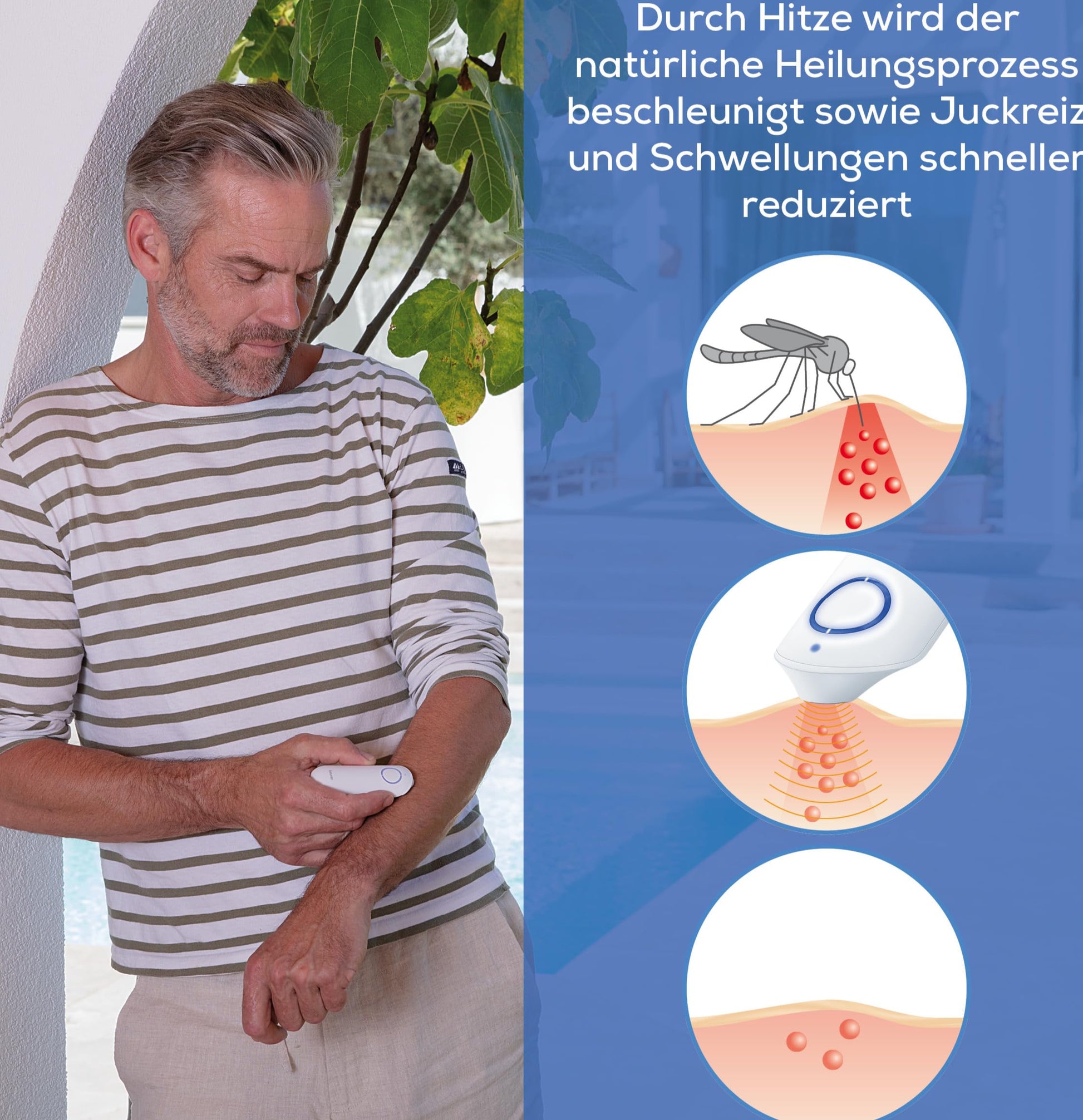 - LINDERUNG VON SYMPTOMEN: Durch gezielte Wärmeeinwirkung auf der betroffenen Stelle können Juckreiz und Schwellungen gelindert, sowie die Symptomatik verbessert werden